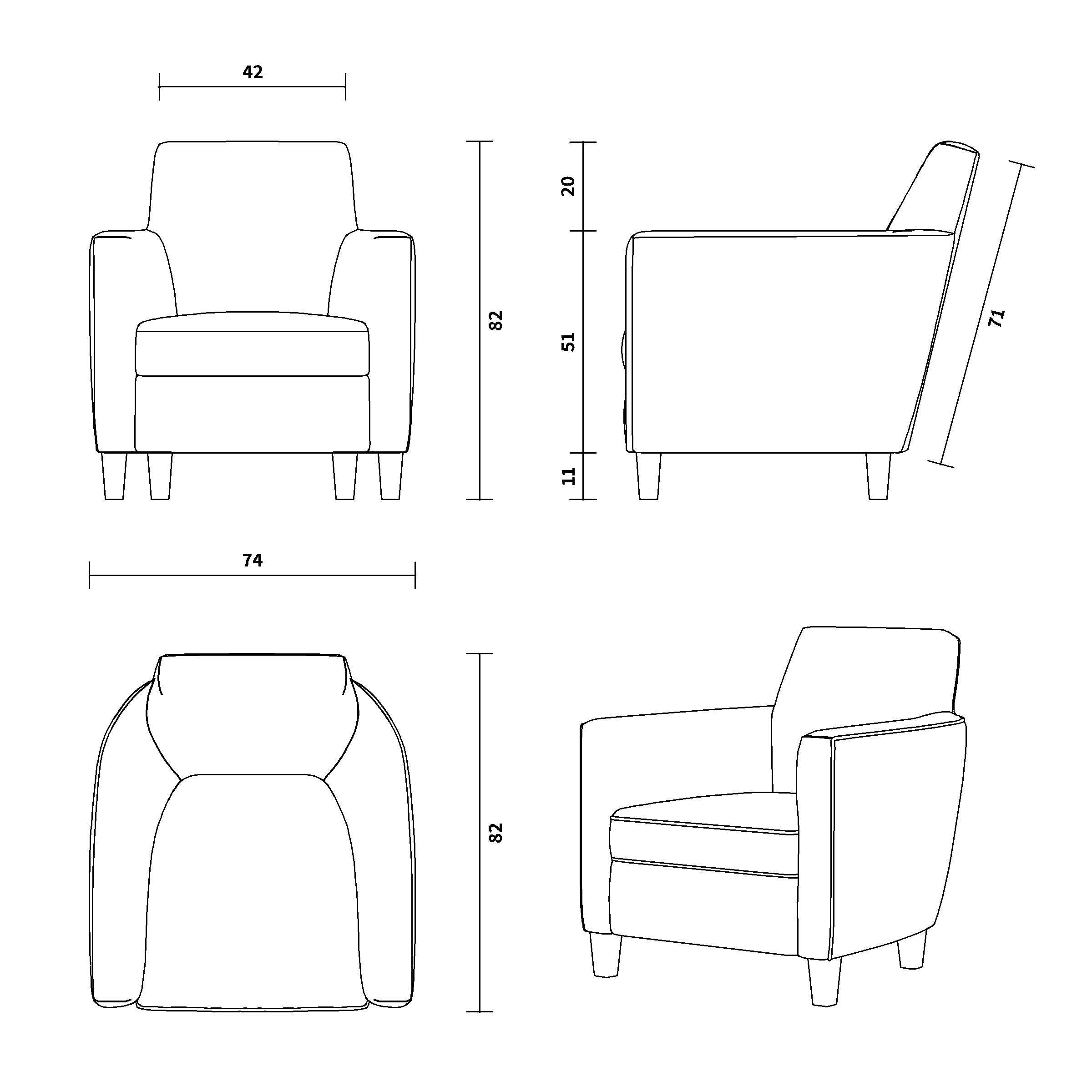Lani is an armchair designed for those precise moments of rest, where comfort and simplicity meet clean, elegant design. It features a high back that offers solid support, a removable seat cushion for easy maintenance, and gently curved armrests that soften the lines and invite relaxed seating. The solid wood legs add a refined look and a sense of stability. With its quiet presence and functional elegance, Lani blends effortlessly into almost any space, bringing a sense of everyday calm.