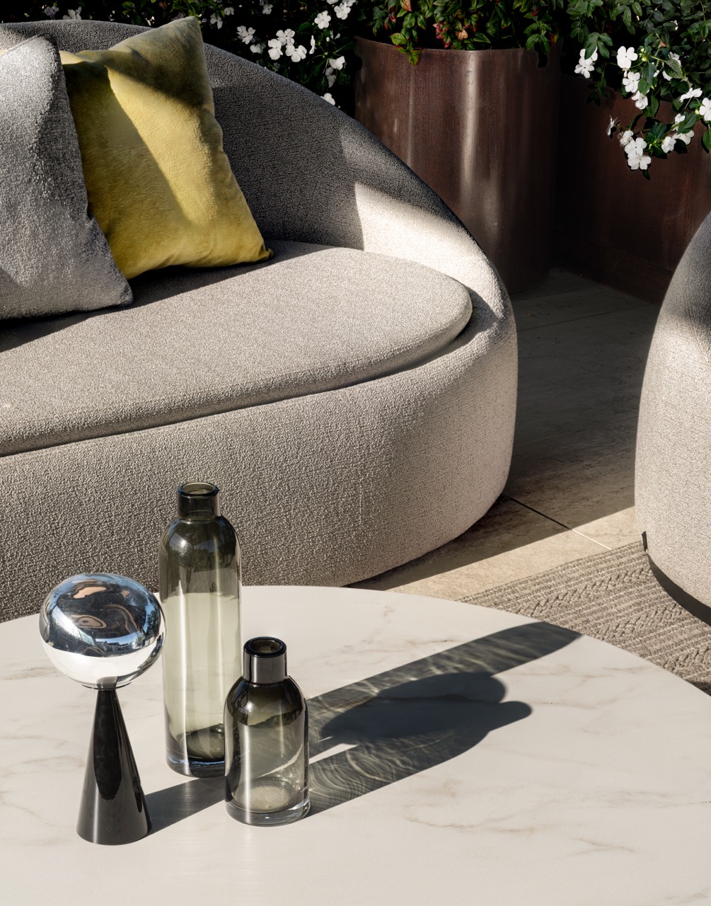כל הרהיטים תוכננו לעמידות בחוץ, עם כיסויים מקוריים שנשלפים בקלות כשצריך. ותשומת הלב לצמחייה? מורגשת בכל פינה, תכנון מדויק שיודע לחבר בין חומר לאור, בין קבוע למשתנה. כמו תמיד, גם בפרויקט הזה היה חיבור אמיתי בינינו לבין המעצבת, מקצועי, חברי, כזה שמייצר שפה משותפת בלי לדבר יותר מדי.