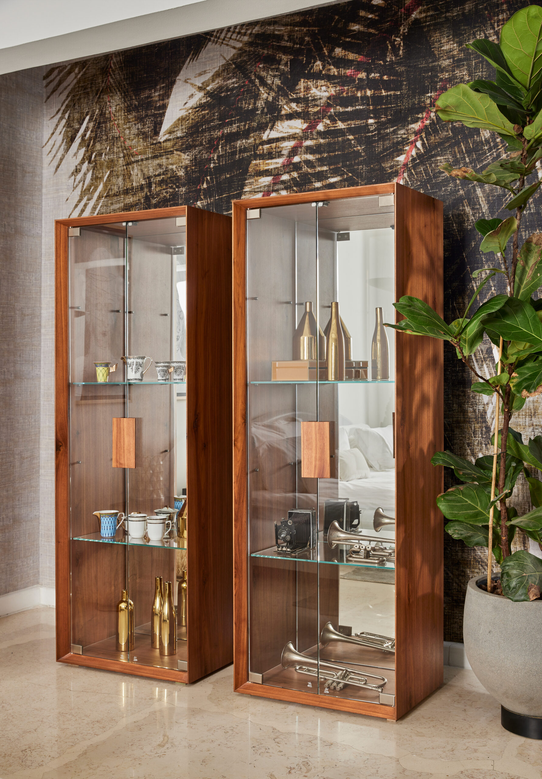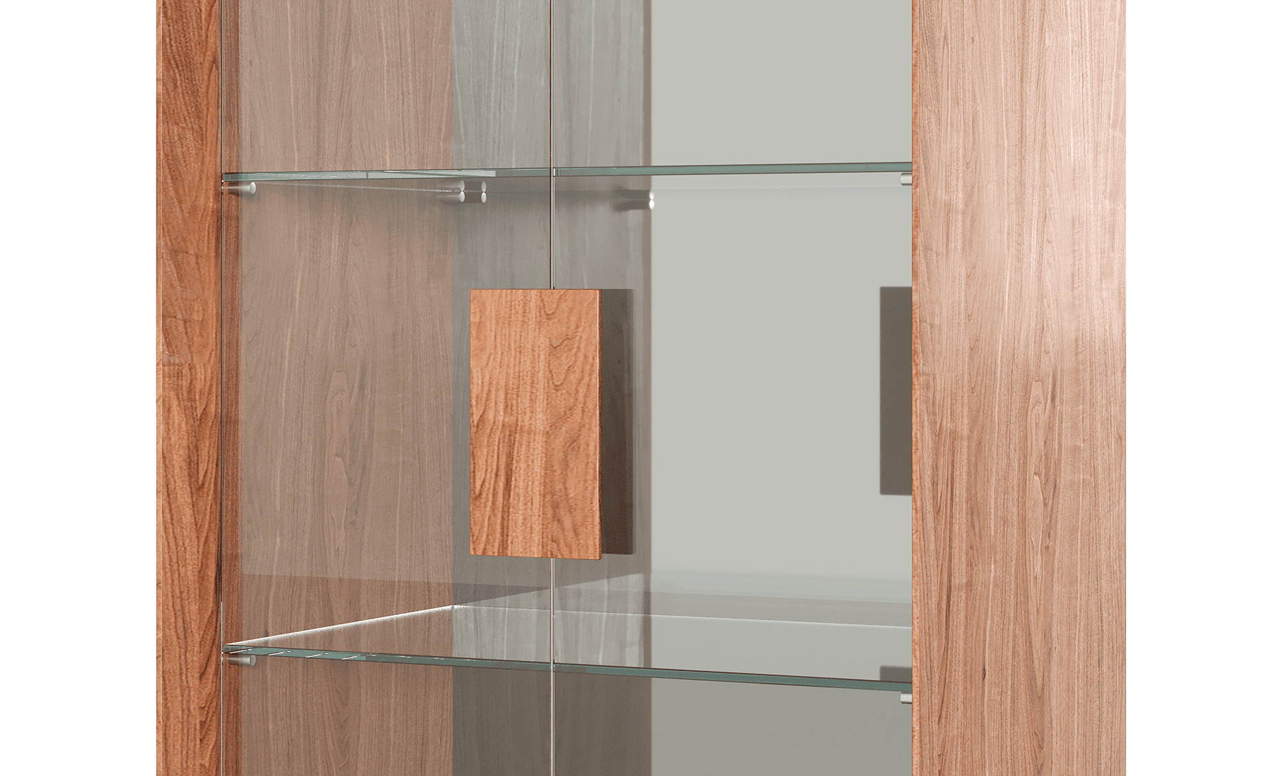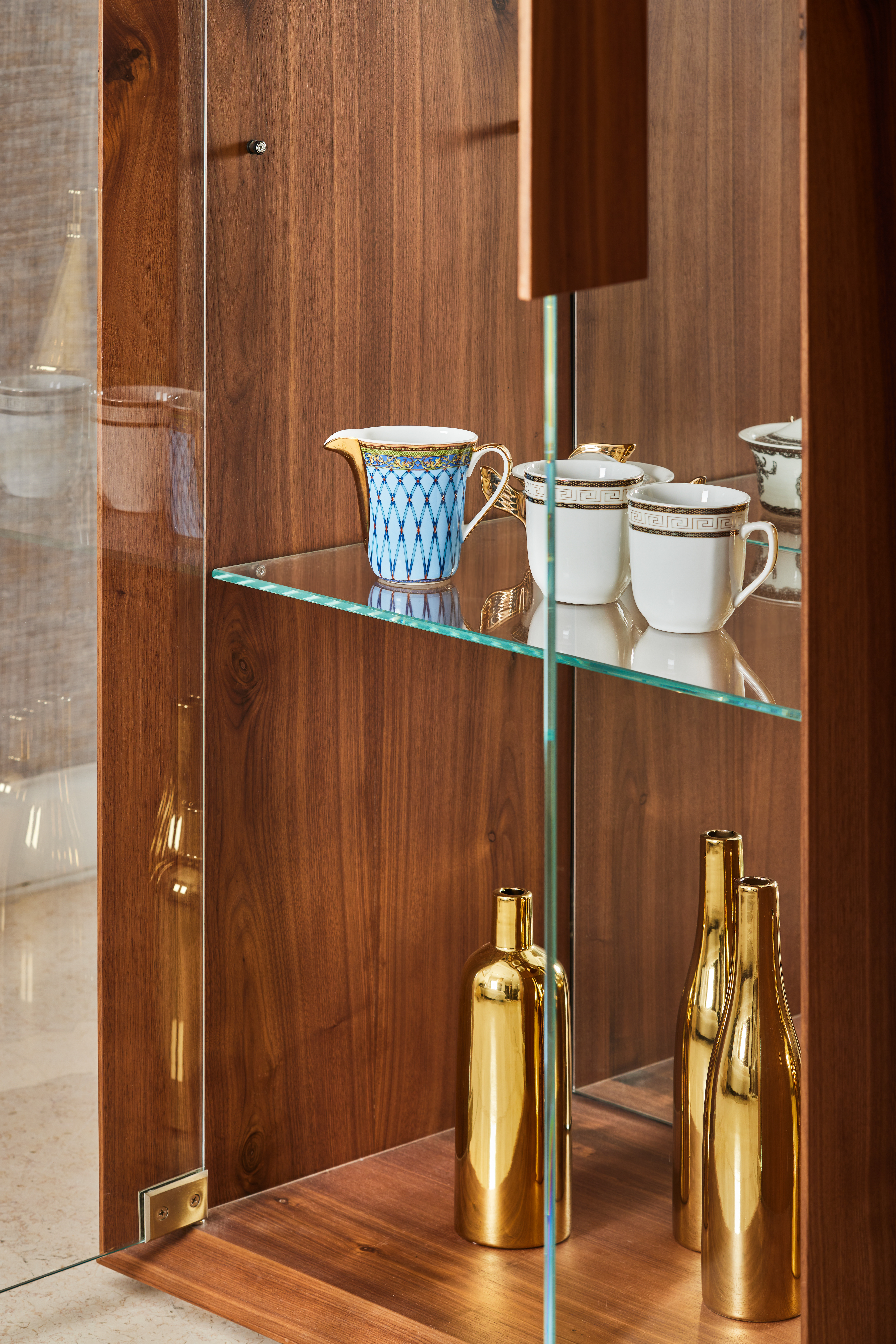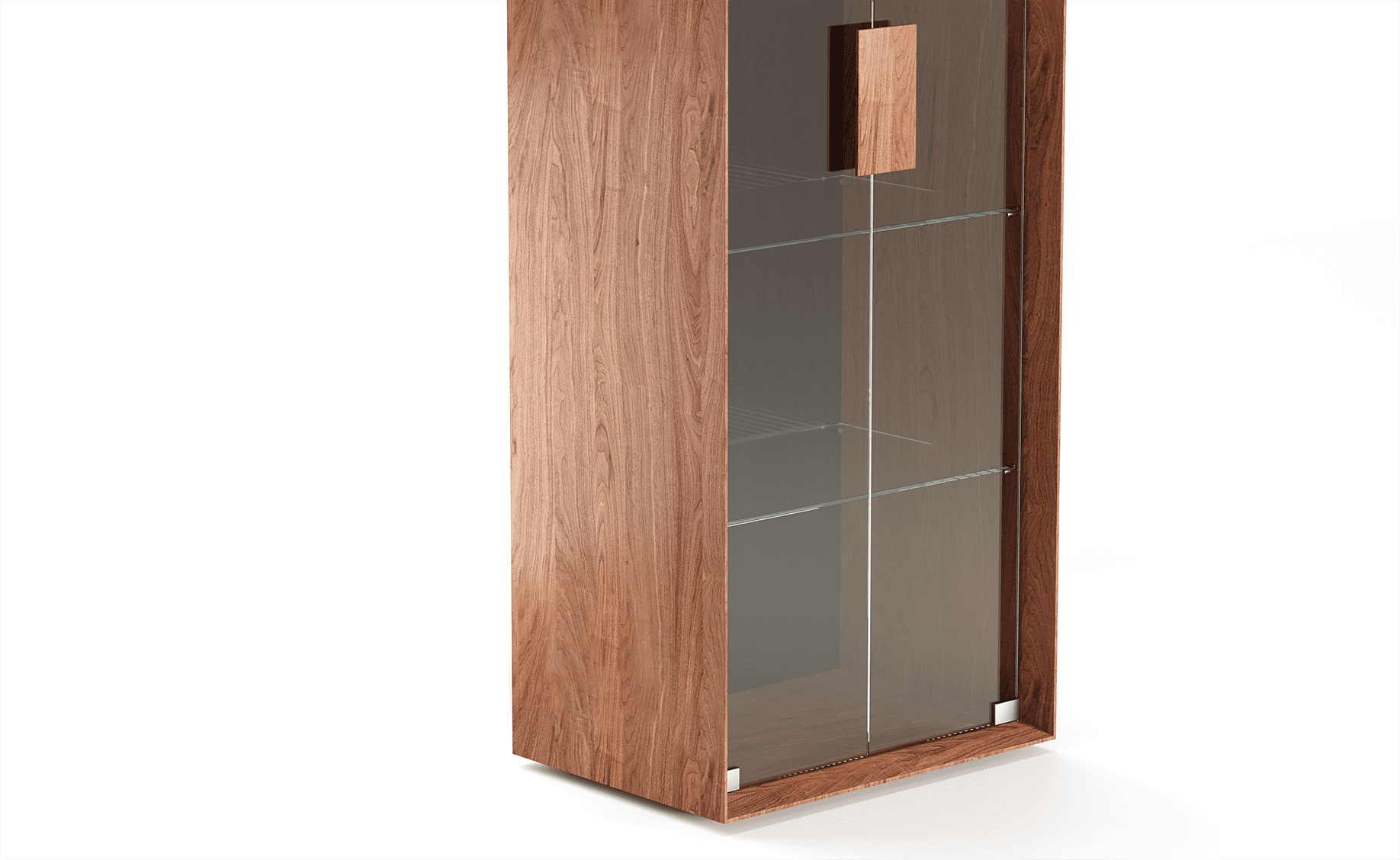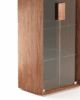 ויטרינה סיכה שייכת לקולקציה רחבה של רהיטים שעוצבו מתוך רצון לייצר נוכחות שקטה. כזו שלא מושכת תשומת לב באופן מיידי אבל משאירה חותם לאורך זמן. הקווים ההיקפיים שלה מסתיימים בסיומת דקה מאוד וזה גם מה שהעניק לה את שמה. הגוף עשוי מפורניר והדלתות בזכוכית שמוסיפה עומק וחומריות. פּנים היחידה מאופיין במדפי זכוכית דקים וגב בגימור מראה שקופה, המקנה לויטרינה ולאובייקטים בתוכה מראה עמוק ואינסופי. המפגש בין העץ לקווים הישרים יוצר תחושה של דיוק, של רהיט שמחזיק בתוכו מורכבות אבל לא מרגיש מחייב או כבד. הוא פשוט נמצא שם, מחובר לסביבה שלו ונראה כאילו תמיד היה.